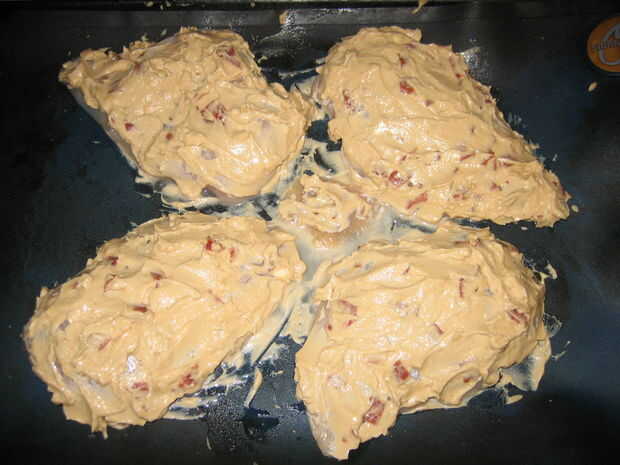 Precalentar el horno a 375° y salir algún papel o una estera para hornear a la línea de su hoja, queremos que nos reciban los sabores va a lo largo de toda la mama, así difundir un poco de la mezcla sobre la bandeja antes de colocar el pollo. Empezar a cubrir cada pieza con el resto de la mezcla de mayonesa, asegurándose de que a los lados.