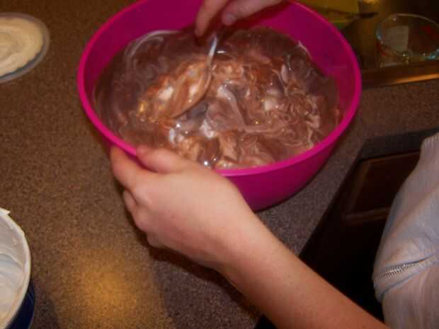 Con la misma cuchara, suavemente "doblar" el Cool Whip hasta que ha sido mezclado completamente en la mezcla, dando como resultado una sustancia suave y cremosa.