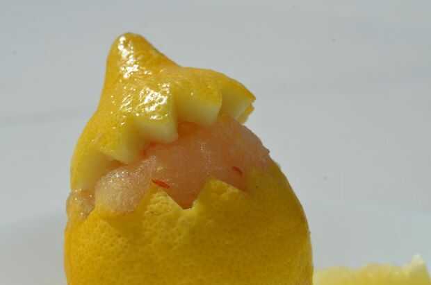 Poner el sorbete de limón ahuecado hacia fuera
