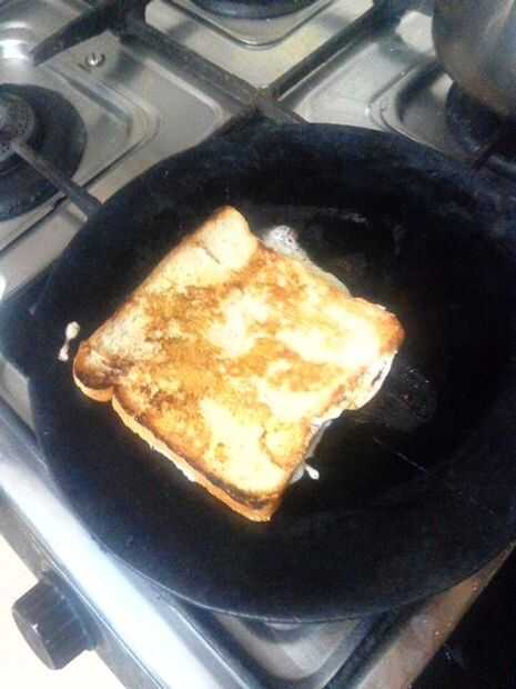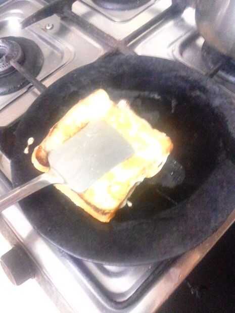 Tan después de recibir el pan en la mezcla que hiciste, solo ponerlo en la sartén y freír...