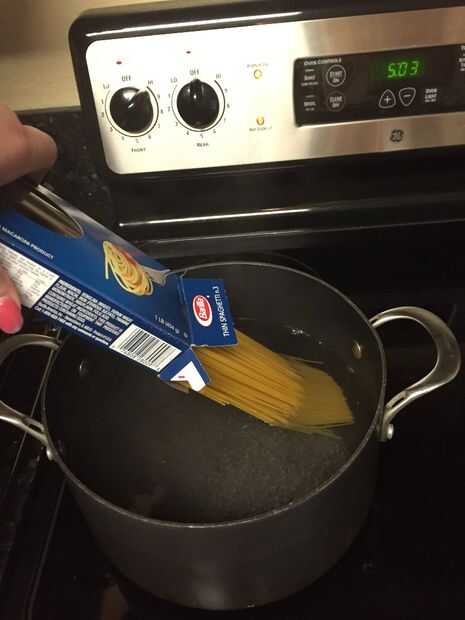 Una vez que el agua esté en ebullición añadir dos paquetes de fideos