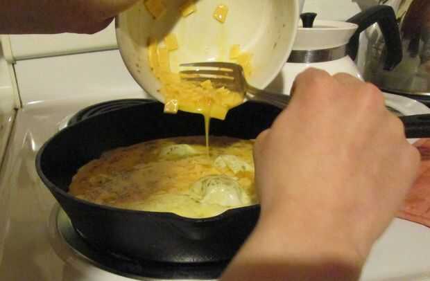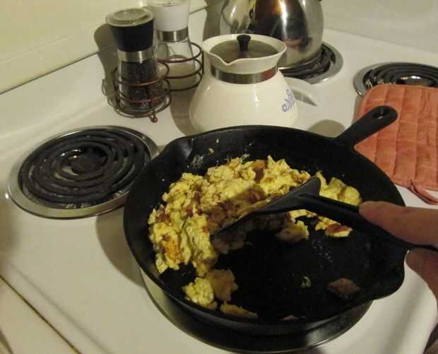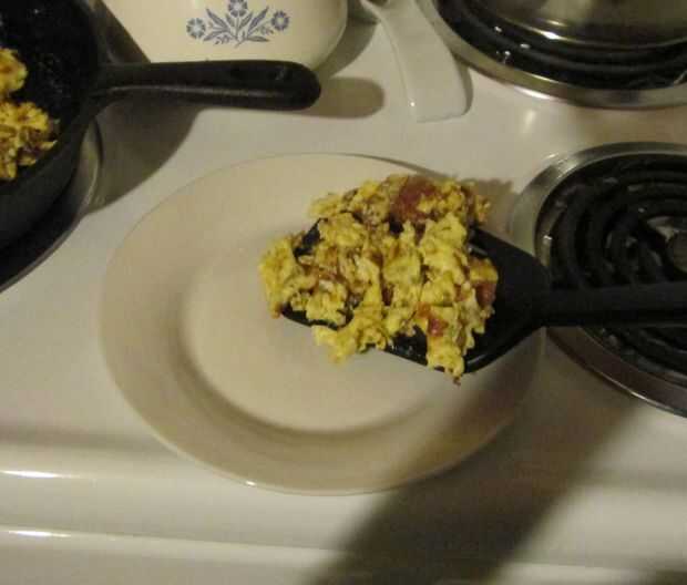 este es un desayuno comer todas las mañanas que es muy fácil de hacer.Paso 1: equipo de Lo que usted necesita:* Un pan* 2 huevos* Una espátula* Queso Cottage* Canela* Avena (opcional)Paso 2: Huevos revueltos Romper los huevos en la sartén y ponga la