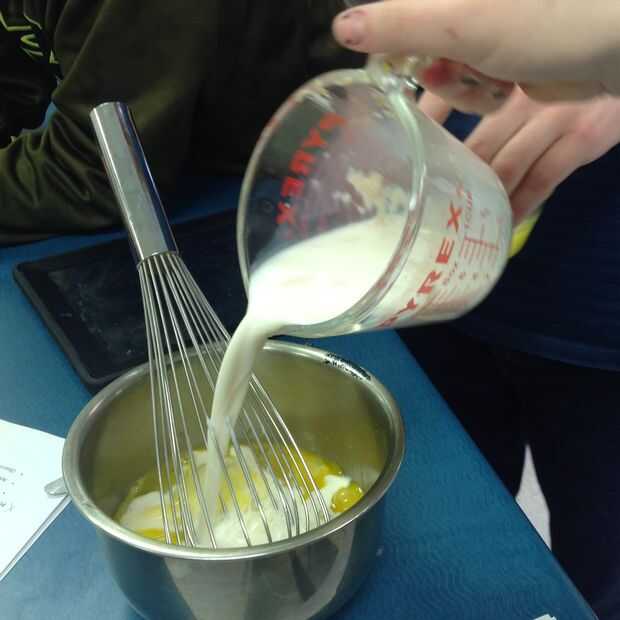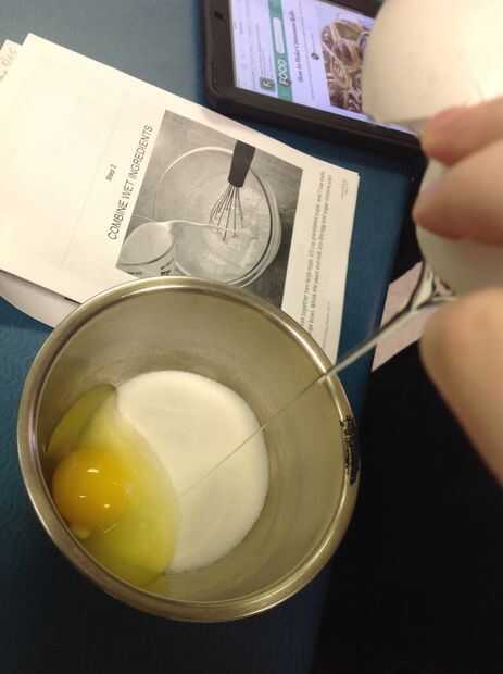 2. combine los ingredientes húmedos, mientras tanto, batir los dos huevos grandes, 1/2 taza granulado de azúcar, y? Taza derretido la mantequilla en un tazón grande. Batir la leche y la levadura en la mezcla de huevo y azúcar hasta que esté combinados.
