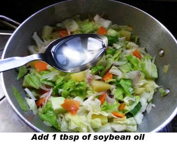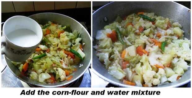 Mezclar 2 cucharadas de harina de maíz con media taza de agua y añadir el almíbar a las verduras.