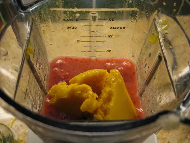 Paso 4: Agregar una taza y media de sorbete de mango y licúe hasta que el batido quede liso sedoso.