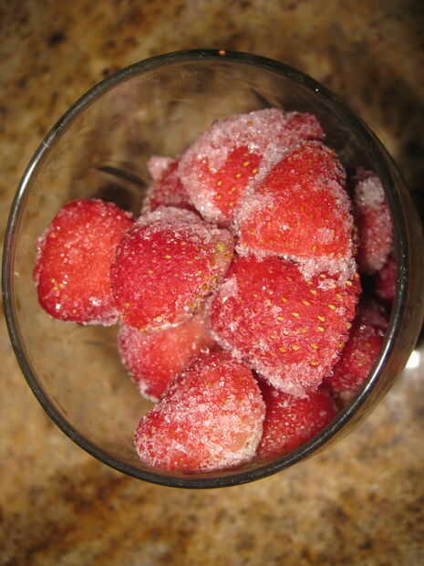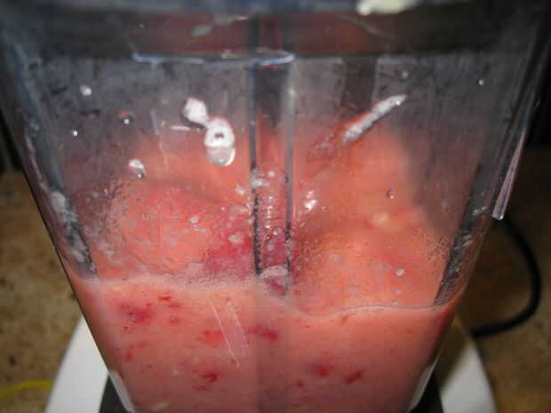 Paso 3: Añadir dos tazas de fresas congeladas (o frescas) en su licuado. Mezclar hasta que las fresas sólo quedan pequeños grumos.