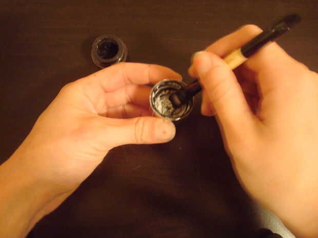 Primero sumerja en la crema del trazador de líneas (apenas consigue un poco en la punta del pincel). Entonces yo difundirlo hacia fuera en el interior de la tapa de la crema protectora con el cepillo por lo que sólo un poco en el cepillo. Mientras que yo estoy aplicando a mis ojos, si necesito más delineador de ojos a sólo tomar algunos desde el interior de la tapa.