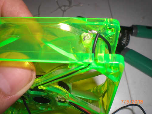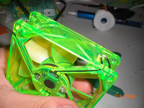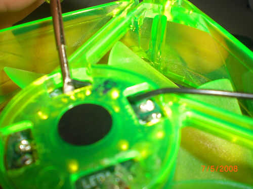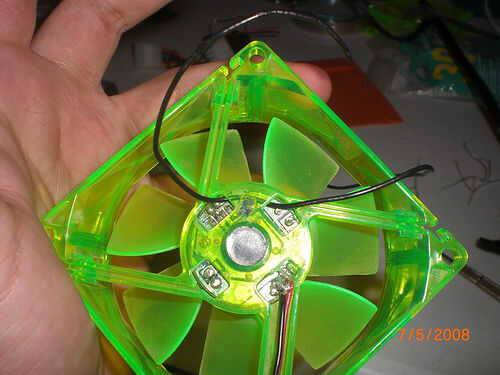Mover hacia abajo en el centro del ventilador. (puede que necesite quitar la pegatina)