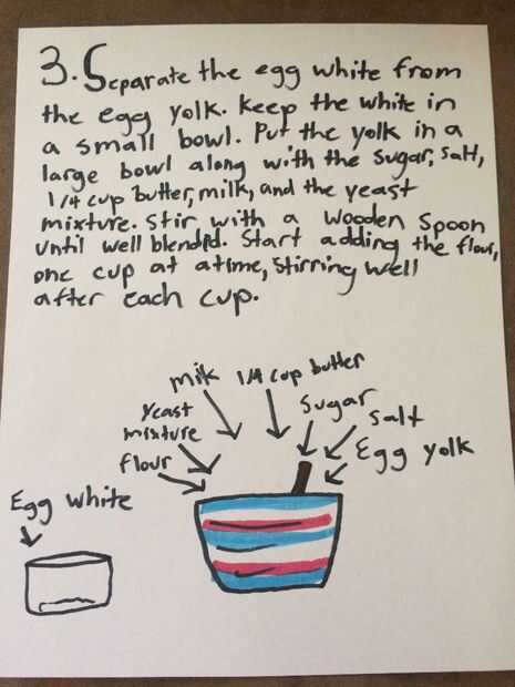 SEPARAR LA CLARA DEL HUEVO DE LA YEMA DE HUEVO. MANTENER EL HUEVO BLANCO EN UN RECIPIENTE Y PONER LA YEMA DE HUEVO EN UN BOL GRANDE JUNTO CON, AZÚCAR, SAL, MANTEQUILLA DERRETIDA 1/4 Y LA MEZCLA DE LEVADURA. MEZCLAR POCO CON UNA CUCHARA DE MADERA HASTA QUE QUEDE BIEN MEZCLADO. EMPEZAR A AGREGAR LA HARINA EN UNA TAZA A LA VEZ, REVOLVIENDO BIEN DESPUÉS DE CADA TAZA.