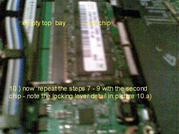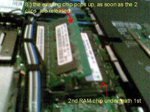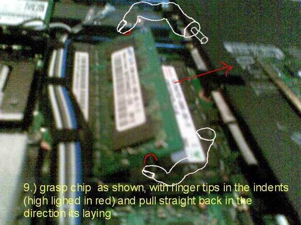 8.) una vez liberada el RAM chip aparecerá en su montaje en aproximadamente un ángulo de 20 grados.