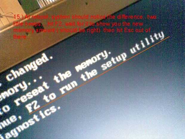 16.) lo siguiente que sucedió fue dio a blips de dolor o se fue indignados ruidos y aparece este mensaje sobre el cambio en la memoria.