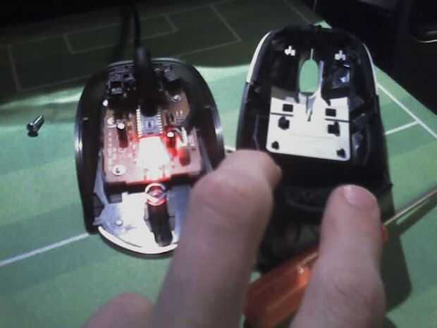 poner la tapa en la parte inferior del ratón y mueva la parte trasera superior en su lugar y luego atornillarla nuevamente juntos.