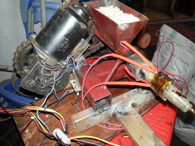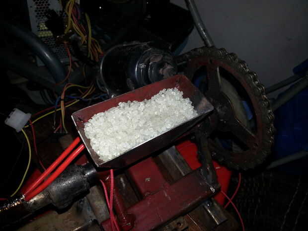 Si ves las imágenes, estoy usando el calentador de cerámica dos DC 12V (situado en la parte superior e inferior del cañón) extrusión de pellets PLA y el ABS solo es fusión perfectamente. PERO ABS requieren más tiempo para calentador se caliente lo suficiente.