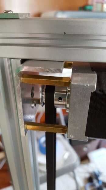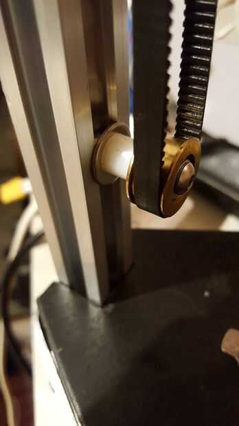 - Polea inferior debe fijarse con el tornillo M5 de 25mm con 1/2 en espaciador y la arandela M5 con tuerca en T en el interior (como se muestra en la imagen).