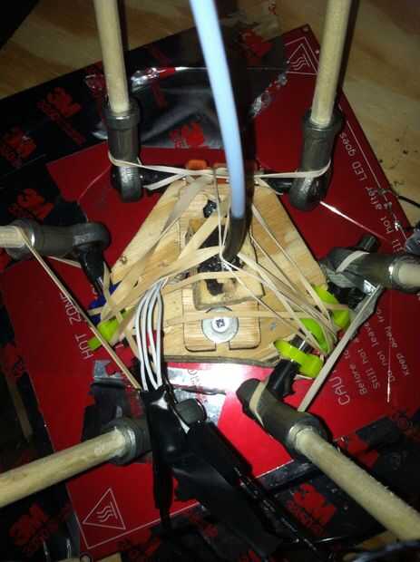 Sólo tratar de hacer esto tan preciso como sea posible. Errores pueden desordenar sus impresiones. Idealmente el carro de cabezal de impresión tendrá lados en ángulo de 60 grados perfecto... Una vez más sin embargo, debe ser lo suficientemente simple como para uno sólo impresión hacia fuera una vez que haya terminado con su impresora. Todo lo que hice fue zip atar las varillas de 8mm en los lados. Su transporte puede ser prácticamente cualquier tamaño; sólo necesitará modificar el tamaño en el firmware.