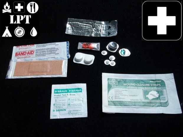 El Kit de supervivencia contiene los siguientes elementos que le proporcionará algunas capacidades muy básicas primeros auxilios y medicamentos: