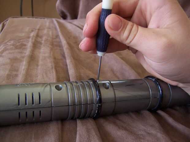 Así acabo el sable de luz de Darth Vader de la Disney Store de mercancía despierta a la fuerza que tienen y estaba tratando de hacer que un titular o clip que no conseguiría de la manera y el no daño el sable de luz original. después de atornillar co