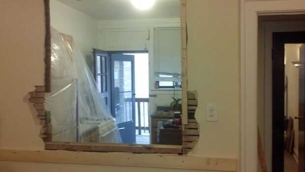 - Perfore unos agujeros exploratorios. Usé la Sierra de paneles de yeso y un martillo para conseguir una mirada.