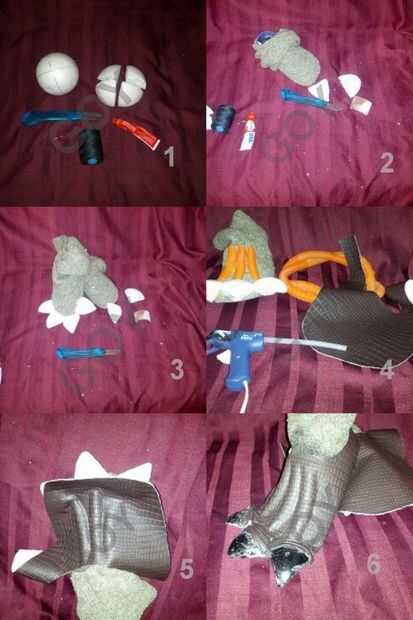 Mitad de la esfera y luego corte cada mitad en 4 y un poco de arena, pintan. Estos son los clavos.