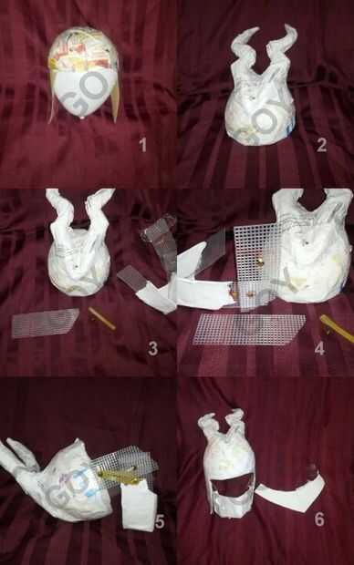 · Forma de los cuernos con periódico y cinta adhesiva, agregar una capa de periódico húmedo en la parte superior.