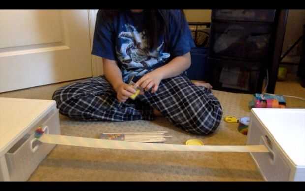 Dependiendo de cuánto desea que la máquina de la onda, la longitud de la cinta puede variar. En esta foto, he unido a dos cajas de almacenamiento; sin embargo, más tarde, cambiarlos a ducha bolsas como trabajaron mejor.