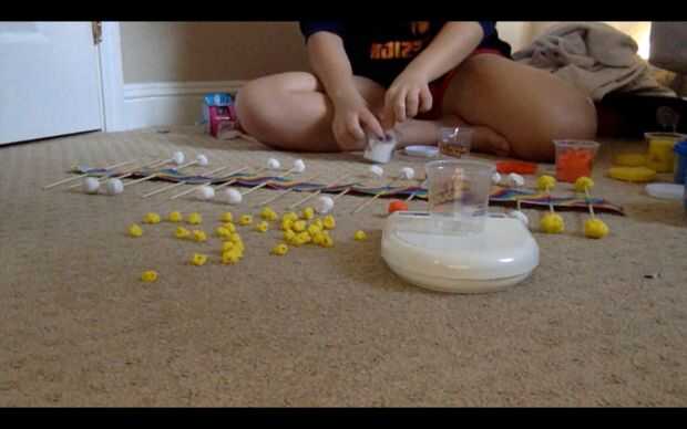 Utilice la escala para pesar la arcilla. He utilizado bolas de arcilla que se pesaron 5g; debe pesan aproximadamente 5g o más, porque al utilizar bolas de arcilla que pesaron 2g, la máquina de olas no funcionaba así. Como se puede ver aquí, me quité las bolitas de arcilla amarilla original y había rehecho las bolas para que pesaron más.