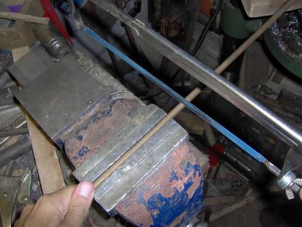 Luego cargar la pieza áspera de la barra en la prensa del taladro, donde lo liso hacia abajo los bordes ásperos del corte de sierra para metales y otras asperezas que en la pieza.