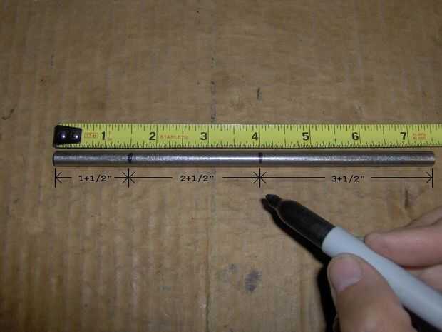 Llamar a un extremo de la varilla, x = 0, hacer marcas en: x = 1 + 1/2 pulgadas y x = 4 pulgadas.