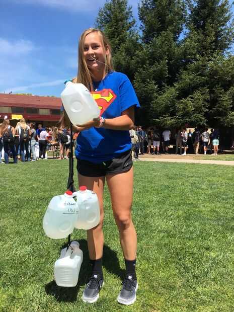 Esta demostración Simple tiene los participantes experimentar el peso de CO2 asociada a un solo galón de gasolina por elevación 4 jarras llenados parcialmente con agua simulando: