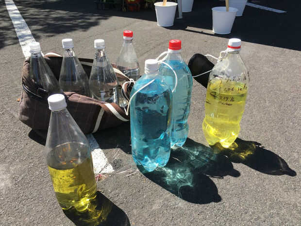 8,5 libras de O2 (teñimos lo azul en 2 botellas de plástico de dos litros.)