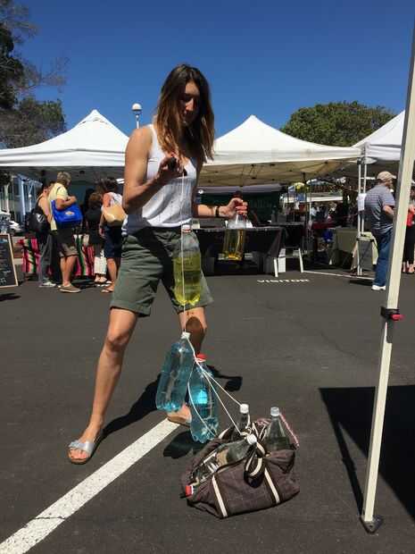Las botellas de peso son todos atadas. Tenemos el "estudiante" primero levantar los 3,2 kilos de carbono, entonces la elevación más alta para recoger los 8,5 kilos de O2 haciendo 11,7 libras de las emisiones de escape. Luego les entregamos la contracción aguas arriba de 2 libras. Hasta ahora, bien.