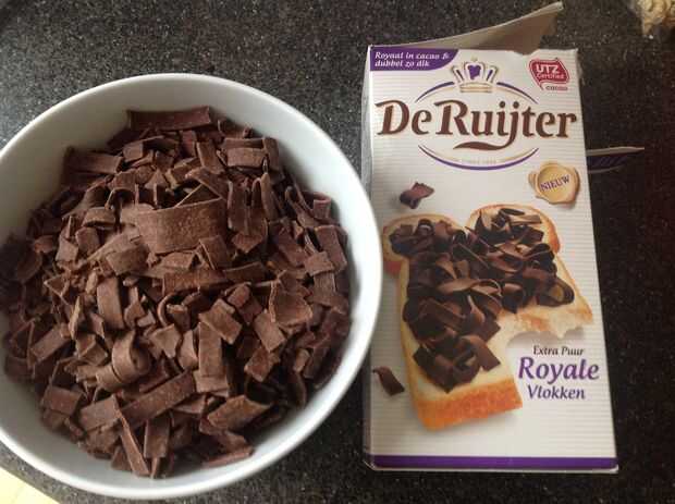 Una rápida NOTA cultural para aquellos pensando en tratar de esto en casa, vlokken es sólo uno de muchos tipos de ingredientes del desayuno de pan. Hay también hagel - se traduce como granizo como las cosas que caen del cielo y rompe cosas pero esto es más como barretas con sabor; 100 y 1000s para los lectores ingleses. Viene en muchos sabores, incluyendo varias frutas, diferentes tipos de chocolate. Otro son muisjes en color rosa o azul. Literalmente se traduce como ratones. Éstos son generalmente más pequeños que hagel y son aparte de la celebración por el nacimiento de un niño.