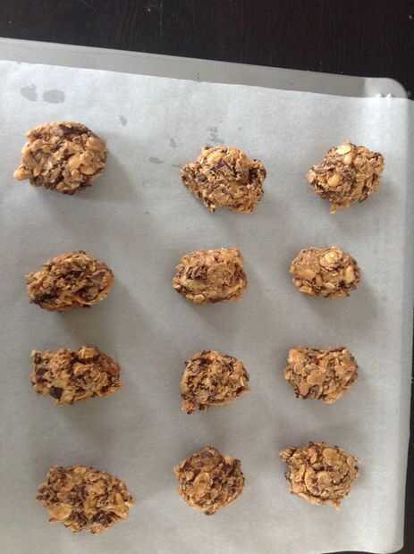 La textura de la masa para galletas es un poco quebradiza antes de hornear. Utilice una ligera presión para formar las galletas. Encontrar una pala pequeña o cuchara grande para servir facilita este trabajo. No tenga miedo de usar sus manos. La ligera presión en la formación de mejora el resultado cuando se cuecen al horno. También recomiendo usar papel para hornear para que sea más fácil quitar las cookies y limpiar más tarde.