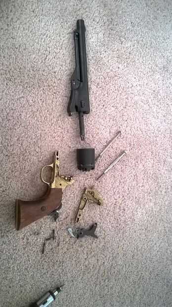 Después de la demanda popular de diversas páginas web, he decidido hacer un Instructable sobre los pasos de poner este revólver maldito detrás juntos. Como muchos otros, también era curioso ver cómo funcionaba el mecanismo. Ni que decir, el pequeño manantial apareció fuera el revólver en cuanto lo abrí. Esto causó mucha confusión y dio lugar a la me gasto más de 4 horas tratando de poner juntos. Finalmente pudo y decidió que sería repetir el proceso otra vez para obtener práctica para que sea capaz de fotografiar los pasos y poner en línea. Aquí están. (Yo todavía no he averiguado cómo fijar la cámara) Ah y por favor llevar con las fotos de mierda, mi teléfono era lo más fácil de manejar mientras trataba de mantener todo junto.