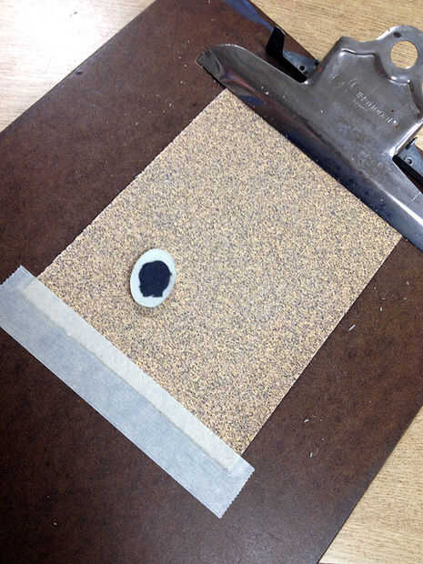 Este paso es solo si lo necesita. Cuando se quita el colgante del plato después de que se seque, potencialmente puede haber un canto afilado alrededor del borde. Derribar con papel de lija. Empecé con grano 180. Esto crea rasguños en la superficie. Con el papel húmedo/seco fui en grano 1000 para establecer una mirada limpia suave.