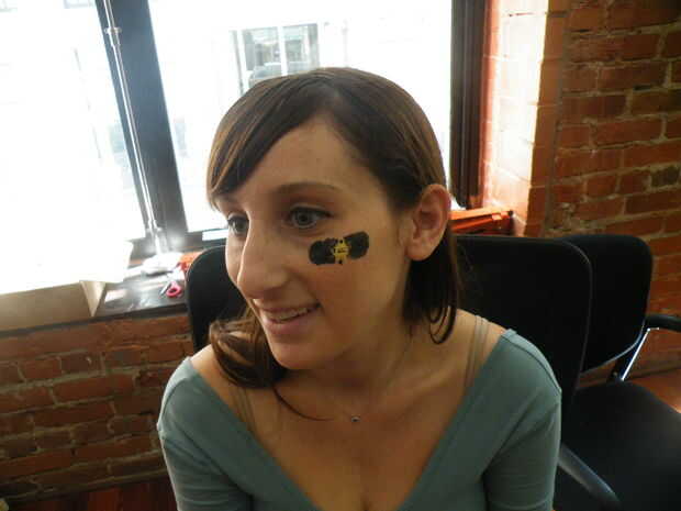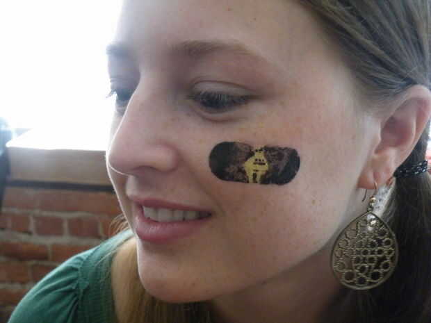 Debajo de cada ojo, llevan una pegatina, principalmente negra, con un icono en el centro que al parecer representa alguna organización deportiva local o equipo. Dicen que es "fútbol" o "béisbol", pero el primero parece más el famoso juego del "mano-huevo" y este último parece no ser un deporte, como parece en gran parte consisten en consumir grandes cantidades de cerveza y comida chatarra, mientras que ver crecido hombres tienen berrinches públicos.