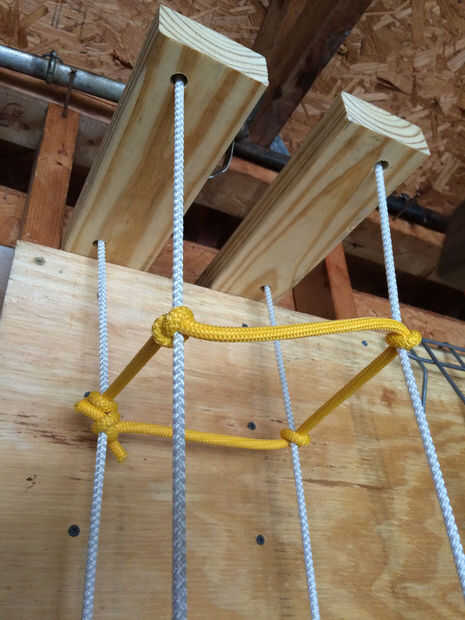 Mida su ubicación coincida con el ancho de su cuadrado de madera contrachapada para exteriores de 2 x 4. Mina fue 10"--puede tamaño tuyo más o menos para sus necesidades. Use tres tornillos para cada "L" para sostener a la parte posterior de la madera contrachapada.