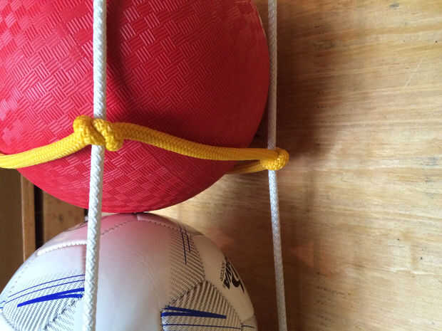 Los nudos son sólo lo suficientemente apretados como para mantener en su lugar, pero también puedo deslizarlos arriba y abajo según sea necesario para diferentes bolas siendo poner allí. Y, porque ellos se atan independientemente en cada esquina, usted puede cualquier lado hacia arriba o hacia abajo, independientemente de los otros.