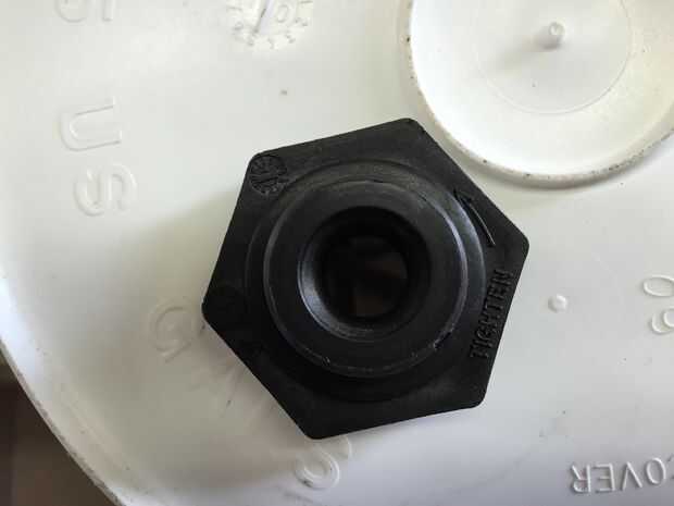 Con mi conferencia de la renuncia de en medio, coge tu recipiente (limpio) y averiguar donde hacer una abertura para el montaje de tabique. Mi tabique era uno con 1/2" rosca hembra NPT y requiere un orificio de alrededor 1-3/8".
