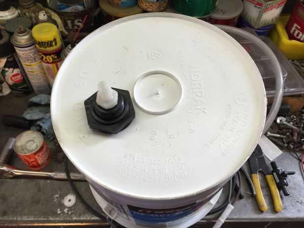 Con la mampara instalada, poner alguna cinta de teflón en una 1/2" X NPT macho 1/2" manguera macho barb fitting y lo instala en el montaje del tabique hermético.