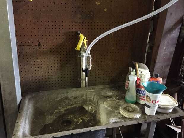 Poner un galón y de fugas. Fácil de arreglar ahora que cuando tiene 5 galones. Tenía alrededor de 20 galones de agua en antigua jarras de galón de agua potable (no tengo ninguna foto pero usted sabe que estoy hablando) que había re-lleno y trajo de la casa para hacer este trabajo.