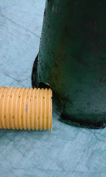 Tenía una longitud libre de la tubería de desagüe de agua de superficie perforada (amarillo) y algunos restos residual pipa de agua (negro) de un trabajo de cuarto de baño. También tenía dos cubos verdes flores aunque algo más pequeño trabajaría definitivamente.
