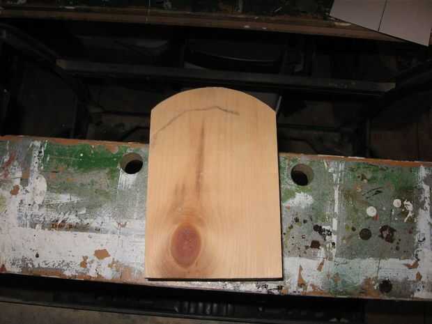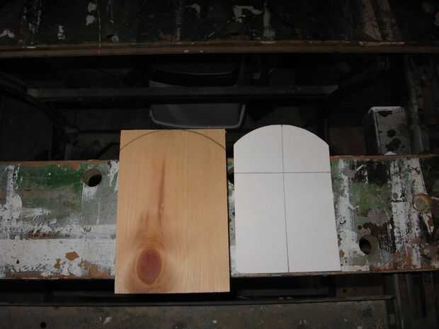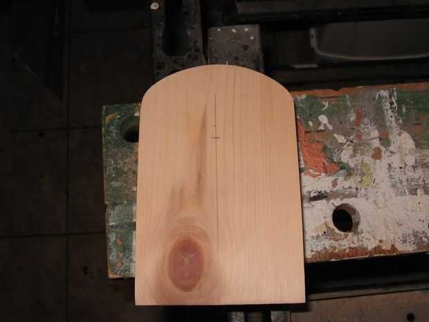 He seleccionado una forma de la piedra sepulcral para mi gabinete. Para conseguir la forma correcta he creado una plantilla en un 4 "x 6" pieza de cartulina y trazó el contorno al bloque de pino de 2 x 4.