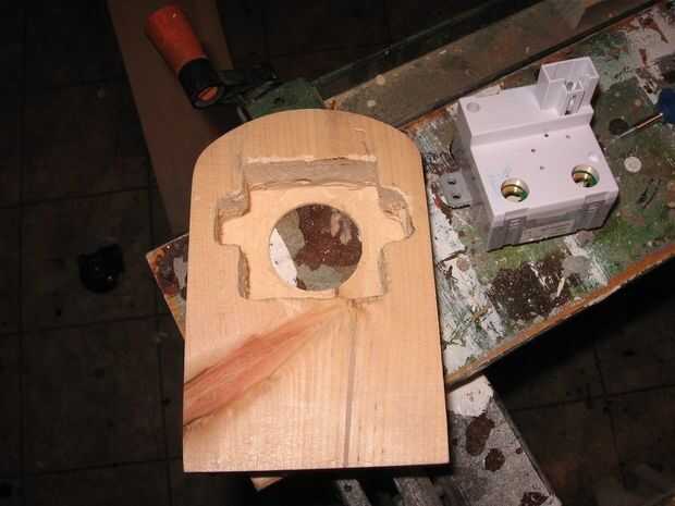 Trazar el contorno del mecanismo del reloj en el bloque de pino y con una herramienta giratoria o un router, crear la cavidad para el reloj en el bloque de pino. Siempre detenga periódicamente para verificar el ajuste con el reloj (debe estar ajustada, pero fácil de quitar) y el pago especial atención que el reloj botón reset puede moverse libremente en su agujero.