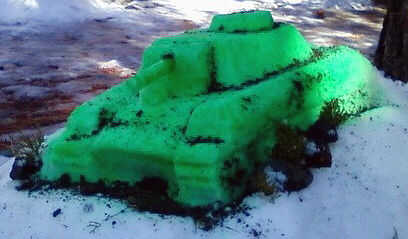 Paso 4: Para colorear es básicamente hasta cuánto color que desee agregar.  Recuerde que el color no será perfectamente opaco, que usted verá un efecto "cono de nieve".  He añadido tierra, rocas y trozos de real arbusto para el realismo agregado. jugar con lo que tienes disponible.  Buena suerte y recuerde que debe mantener sus manos cubiertas con guantes de buena.