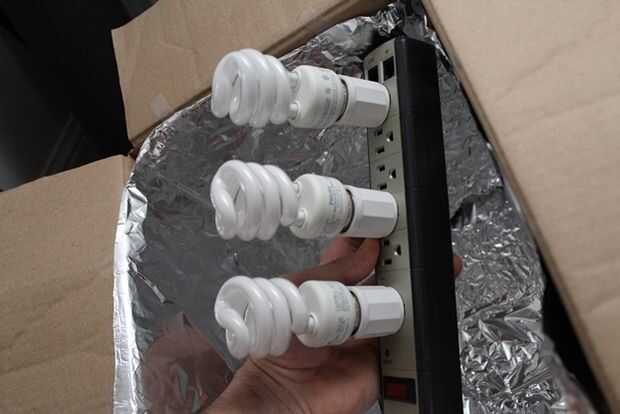 - Enchufe las bombillas en su energía de la barra y sentarse en la parte inferior de la caja, tenerlas boca arriba o de plano, no importa demasiado debido a la genialidad de este cuadro