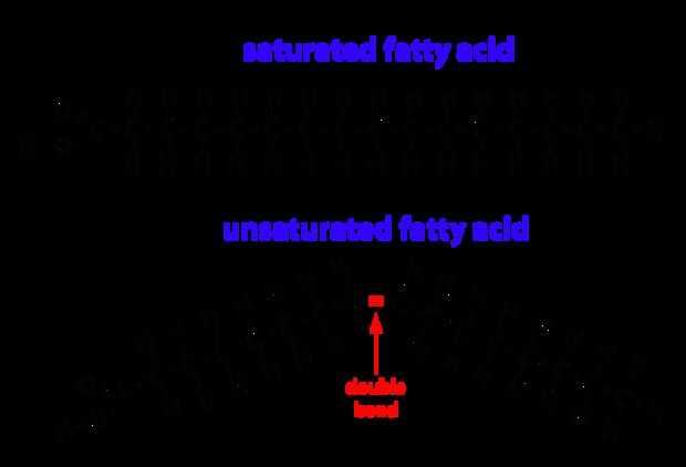 Cada grasa tiene cadenas de ácidos grasos específicos. Si una grasa es saturada, la cadena hidrocarbonada no tiene dobles enlaces. Las grasas saturadas tienen una atracción molecular mucho mayor que las grasas insaturadas.