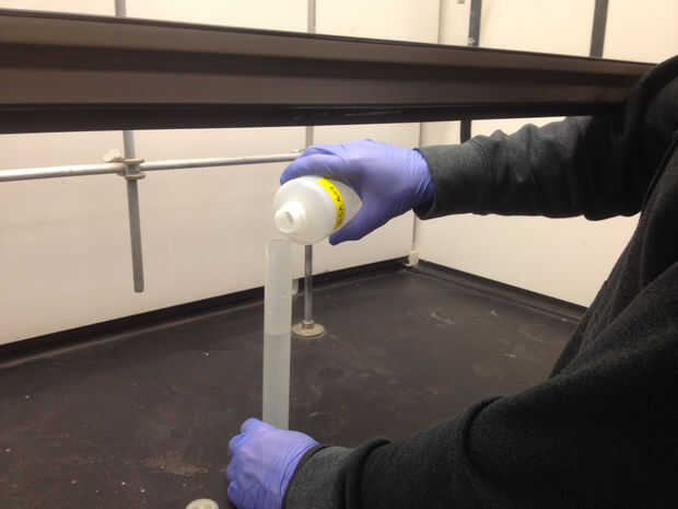 Nuestro último ingrediente es lejía, hidróxido de sodio. Esto se puede adquirir en una ferretería o en línea, pero no importa de donde conseguirlo que tendrá que mezclar con agua. Asegúrese de añadir la lejía al agua y no el agua de la lejía. Agregar agua a la lejía puede provocar la lejía y estallar fuera de su envase, que es extremadamente peligroso. Siempre añadir la lejía al agua. La cantidad de lejía que se utiliza dependerá el valor SAP que calculado.