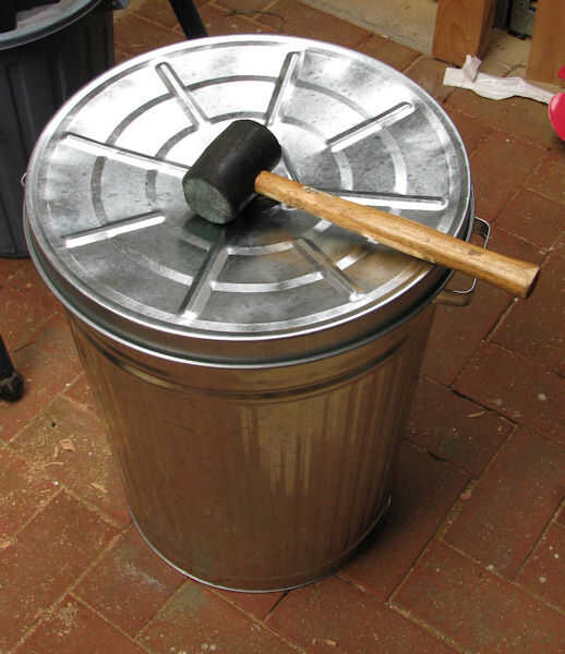 1) Haz un alto, liso cara resistente metal bote de basura y perfore unos agujeros de drenaje en la parte inferior para evitar la recolección de agua de lluvia.