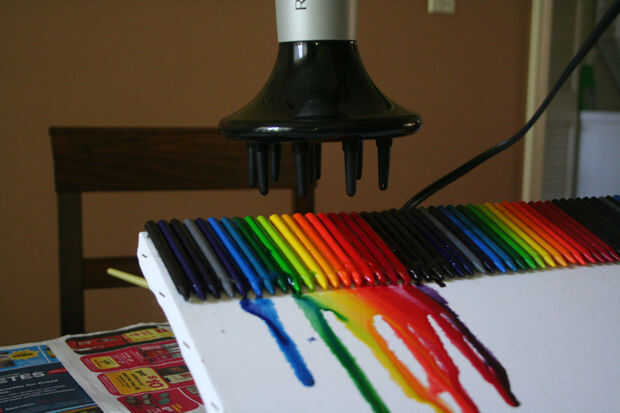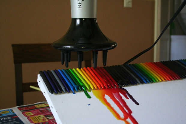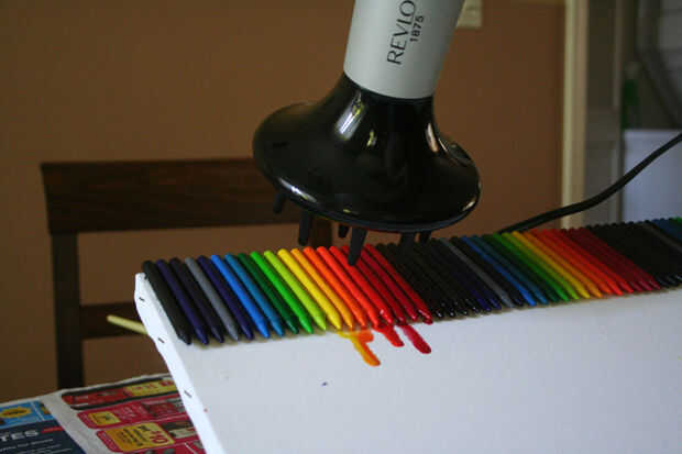 El calor se centran en las ceras. Rápidamente se gire sudorosos, luego iniciar goteo hacia abajo de la lona.